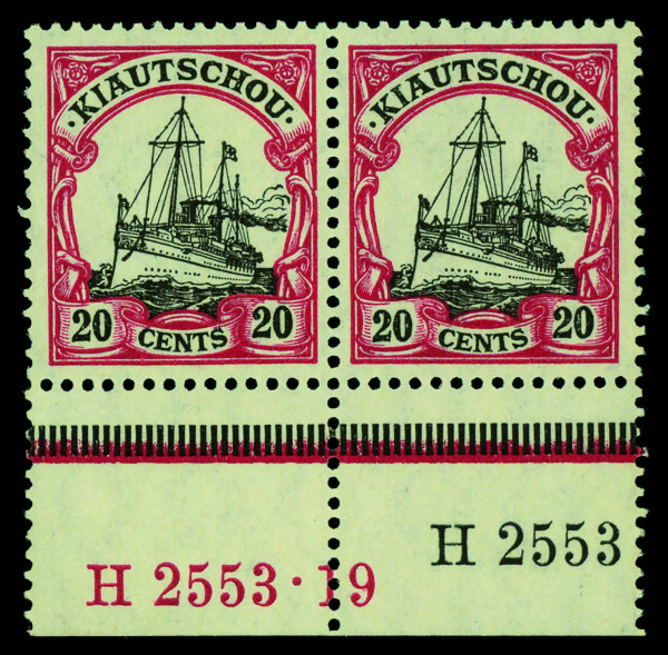 9661 nh 32 II image1918, 20c dark carmine & black Kaiser's Yacht, bottom margin pair with HAN #, o.g., never hinged, Very Fine.