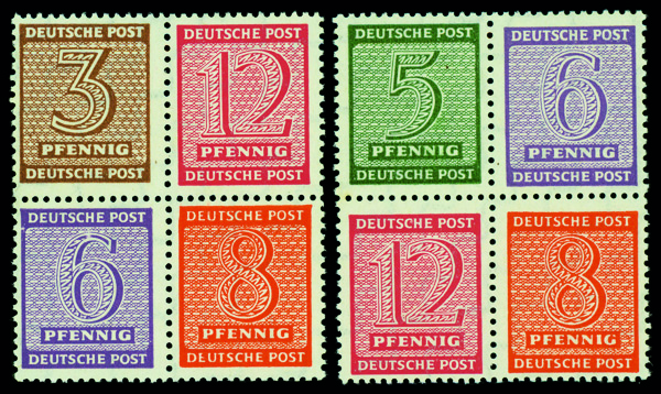 9647 nh SZd7By-8Bxa image1946, 6pf-84pf Leipzig Market Square, imperf., vertical pairs with gutter between, o.g., never hinged, Very Fine to Extremely Fine.
