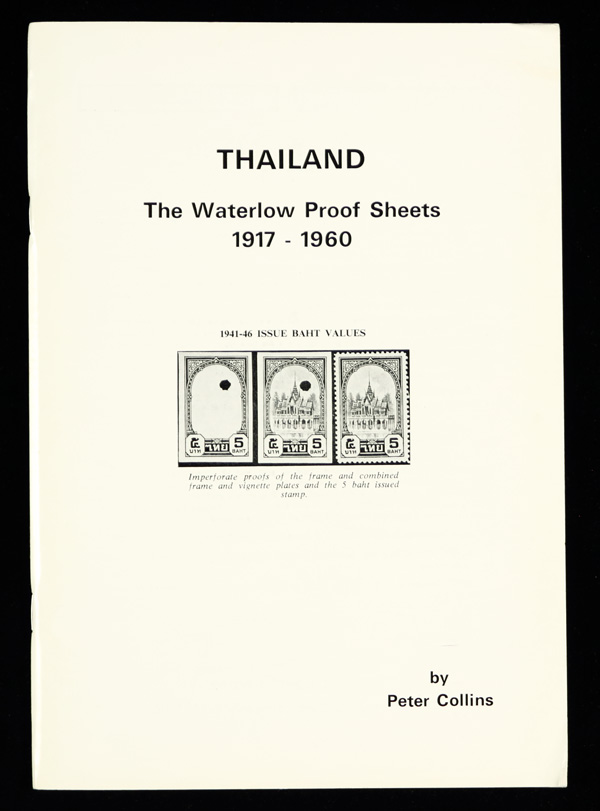 9709 L collins thailand imageCollins, Peter, Thailand: The Waterlow Proof Sheets, 1917-1960, 64pp, paperback; detailed study of the definitives, commemoratives and Revenues of the period. (Image) Suggested Bid $2