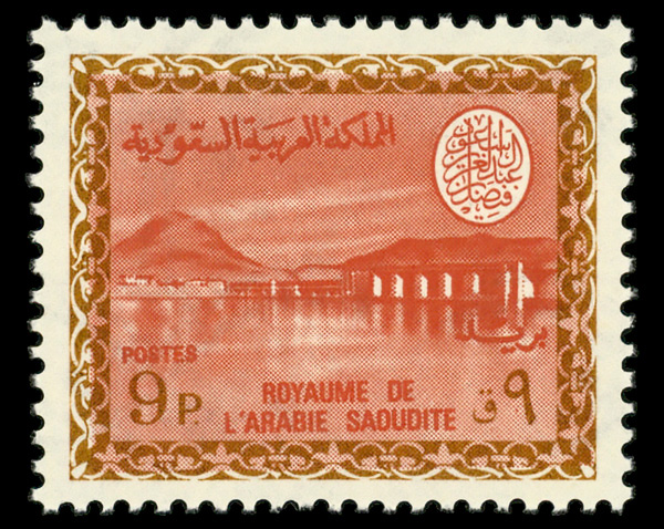 9692 496 image1976, 9p Wadi Hanifa Dam Faisal Cartouche (Scott 496), single, o.g., never hinged, Extremely Fine.