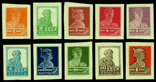 9687 nh 250-259 image1923, 1k-1r Worker, Soldier & Peasant, complete (Scott 250-259), set of 10, o.g., never hinged, Extremely Fine.