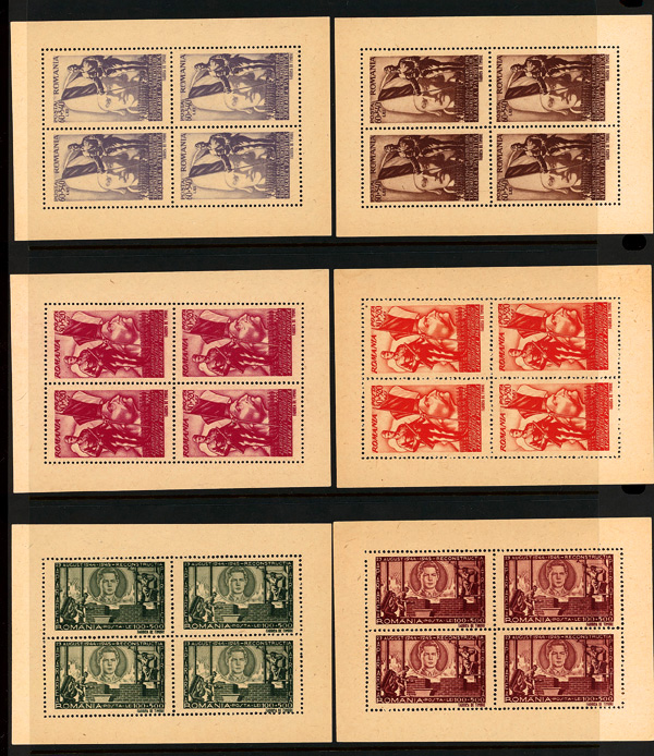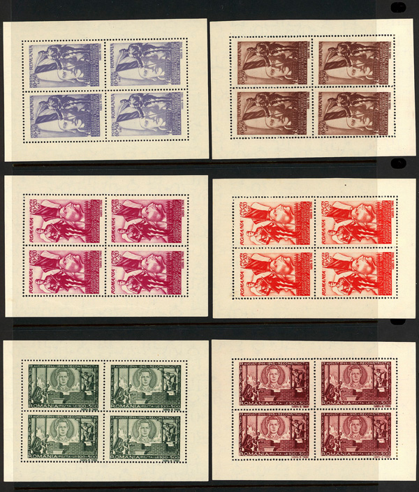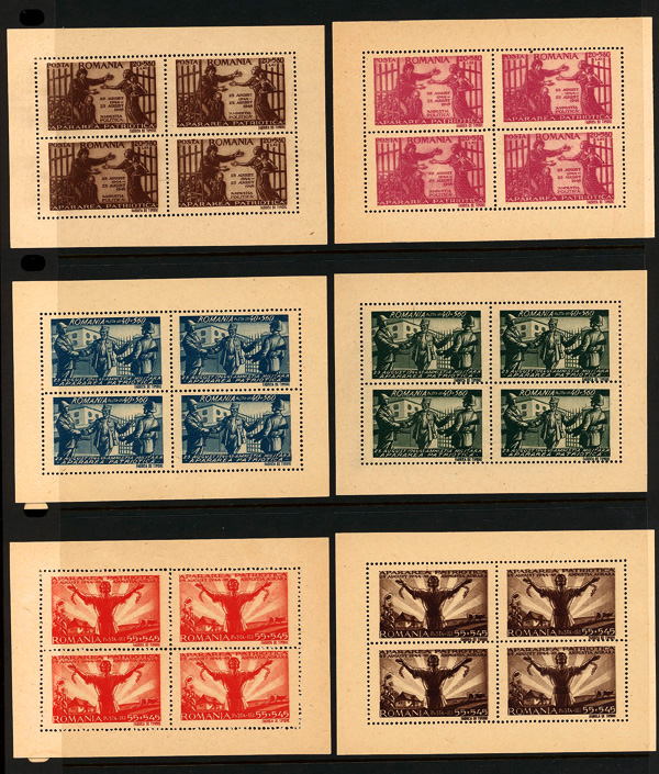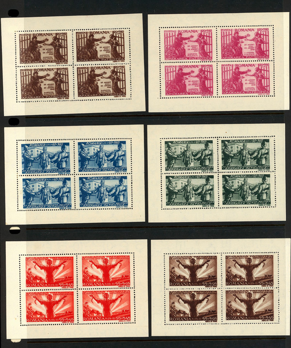 9686 ngbl B292-B303 var. image1945, Russian Armistice, coarse grayish paper, complete (Scott B292-B303 var.), set of 12, panes of 4, without gum as issued, Very Fine to Extremely Fine.