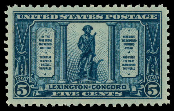 9164 nh 619 image1925, 5¢ Lexington-Concord (Scott 619), o.g., never hinged, Extremely Fine.