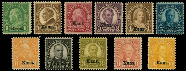9171 nh 658-668 image1929, Kans., 1¢ to 10¢ complete (Scott 658-668), set of 11, o.g., never hinged, Fine.