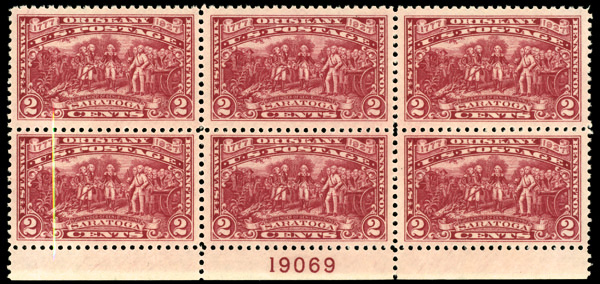 9168 nhbl 644 image1927, 2¢ Burgoyne (Scott 644), plate block of 6, o.g., never hinged, Extremely Fine.