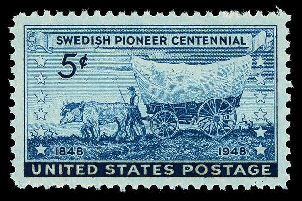 9199 nh 958 image1948, 5¢ Swedish Pioneer (Scott 958), o.g., never hinged, Superb, with 2025 P.F. certificate graded SUP 98.