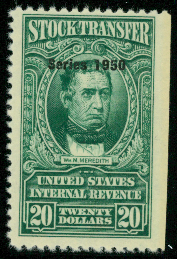 9291 ng RD329 imageStock Transfer, 1950, $20 Meredith (Scott RD329), unused without gum; straight edge at right, Very Fine.