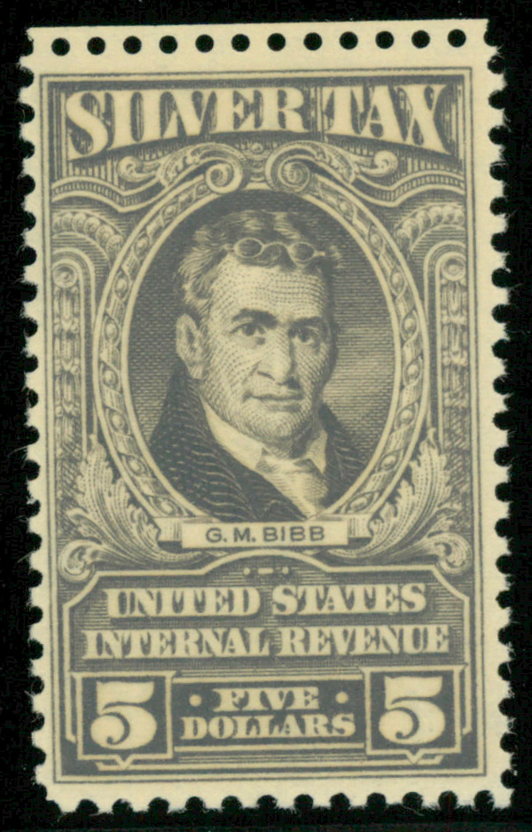 9295 nh RG124 imageSilver Tax, 1944, $5 gray (Scott RG124), o.g., never hinged, Fine.