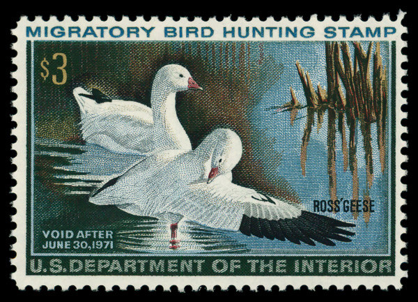 9301 nh RW37 imageFederal Duck Stamp, 1970, $3 Ross's Geese (Scott RW37), o.g., never hinged, Very Fine.