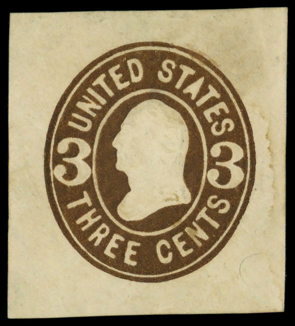 9287 og U60 imageEnvelope, 1865, Nesbitt 4th Issue, 3¢ brown (Scott U60), cut square, without gum as issued, Extremely Fine.