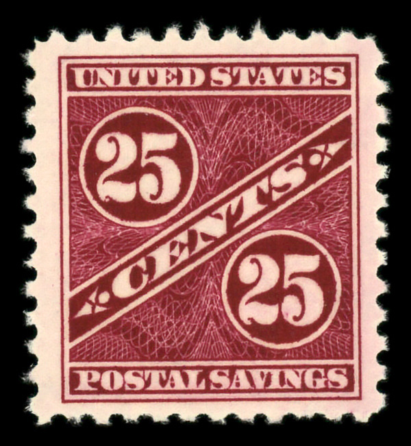 9315 nh PS8 imagePostal Savings, 1940, 25¢ dark carmine rose (Scott PS8), o.g., never hinged, Very Fine to Extremely Fine.
