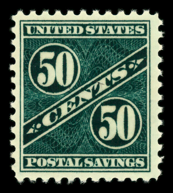9316 nh PS9 imagePostal Savings, 1940, 50¢ dark blue green (Scott PS9), o.g., never hinged, Very Fine.