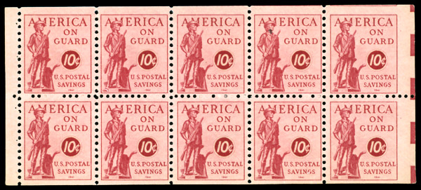 9320 BKnh PS11b var image1941, 10¢ rose red, with Electric Eye Marks miscut at right variety (Scott PS11b var), booklet pane of 10, o.g., never hinged, Fine to Very Fine. (Image) Suggested Bid $50