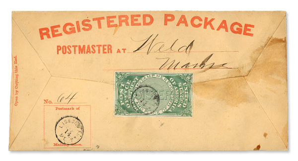 9341 cover OXF1 imageOfficial Seal - Registry, 1872, green (Scott OXF1), on Postage Stamp Agency cover with Barber signature, Very Fine.