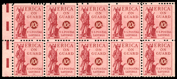 9325 BKnh S1a imageSavings Stamp, 1955, 10¢ rose red (Scott S1a), booklet pane of 10, o.g., never hinged, Fine to Very Fine.