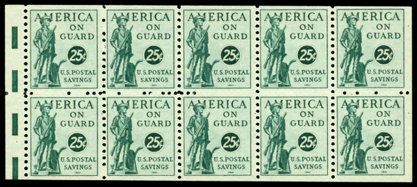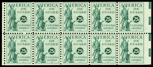 9333 BKnh S7a imageSavings Stamp, 1961, 25¢ dark blue & carmine (Scott S7a), booklet pane of 10, o.g., never hinged, Very Fine.
