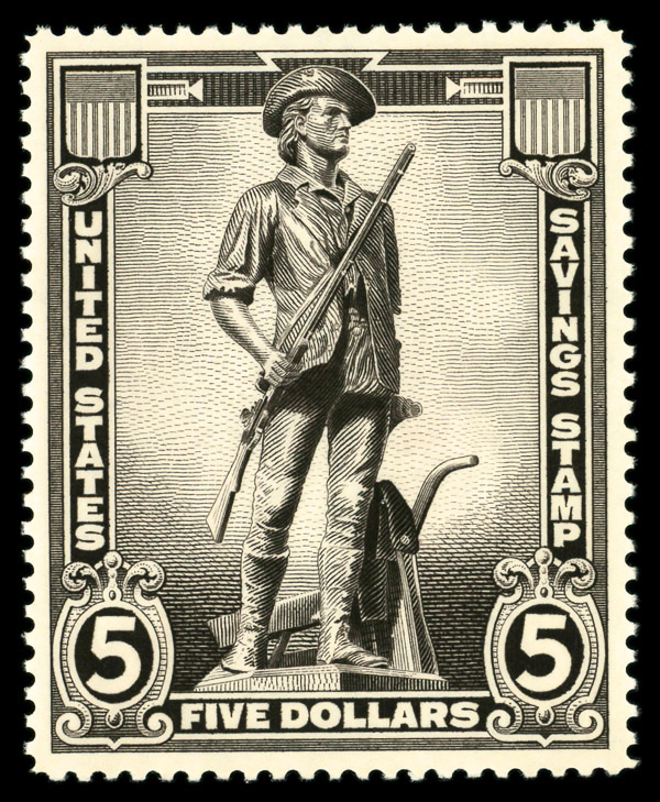 9329 nh S5 imageSavings Stamp, 1956, $5 sepia (Scott S5), o.g., never hinged, Very Fine to Extremely Fine.
