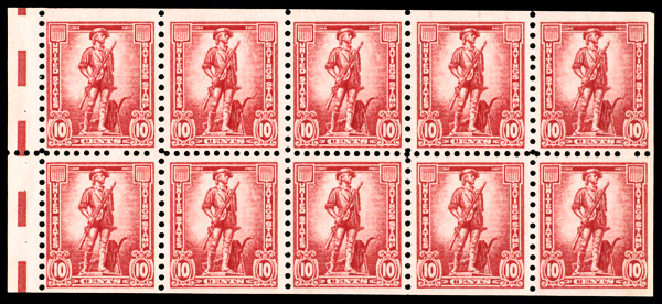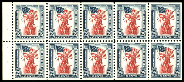 9321 BKnh PS11c image1941, 10¢ rose red, with Electric Eye Marks at left (Scott PS11c), booklet pane of 10, o.g., never hinged, Very Fine.
