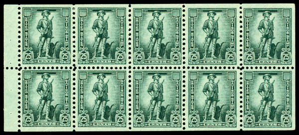 9323 BKog PS12b var image1941, 25¢ blue green, with Electric Eye Marks miscut at right (Scott PS12b var), booklet pane of 10, o.g., lightly hinged, Fine to Very Fine. (Image) Suggested Bid $64
