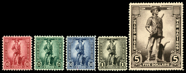 9334 nh WS7-WS11 image1942-45, 10¢-$5 War Savings (Scott WS7-WS11), o.g., never hinged, Very Fine.