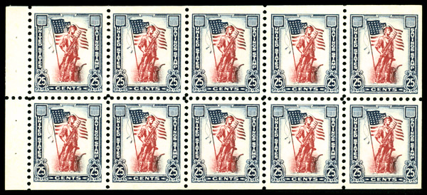 9337 BKnh WS7b var image1942, 10¢ rose red, with Electric Eye Marks miscut at right (Scott WS7b var), booklet pane of 10, o.g., never hinged, Fine to Very Fine.