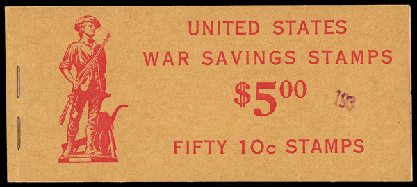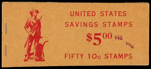 9335 BKnh WS7b image1942, $5 Booklet of 5 panes, with Electric Eye Markings (Scott WS7b), complete unexploded booklet, o.g., never hinged, Fine to Very Fine.