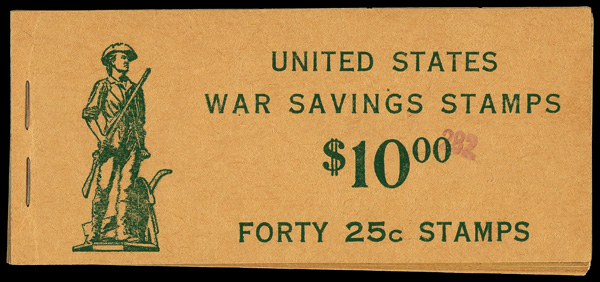 9339 BKnh WS8b image1942, $10 Booklet of 4 panes, with Electric Eye Markings (Scott WS8b), complete unexploded booklet, o.g., never hinged, Fine to Very Fine.