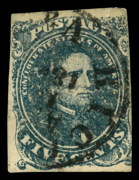 9346 Z 58X2 imageMobile, Ala., 1861, 5¢ blue (Scott 58X2), Fine.