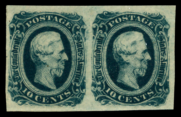 9360 nh 12d image1863, 10¢ dark blue (Scott 12d), pair, o.g., never hinged, Extremely Fine.