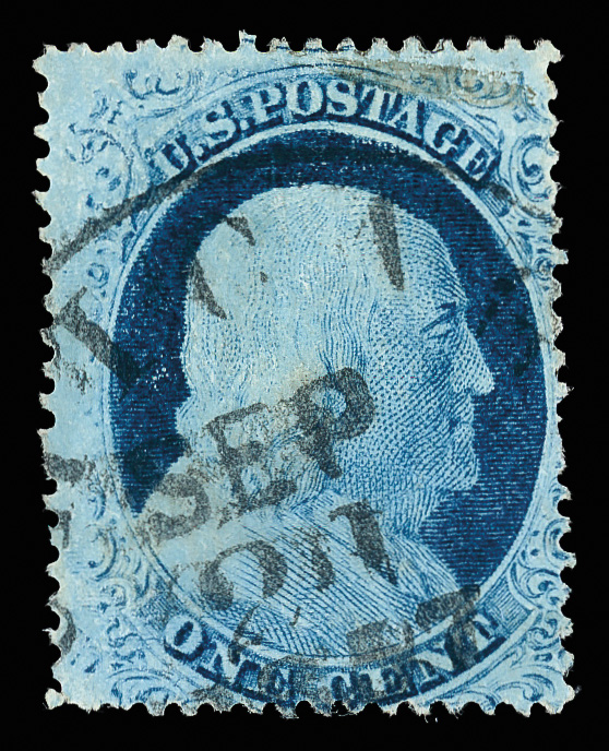 5001 O 9 image1852, 1¢ blue, type IV (Scott 9), Very Fine to Extremely Fine.