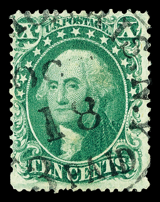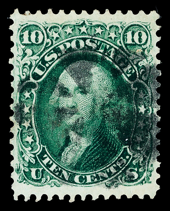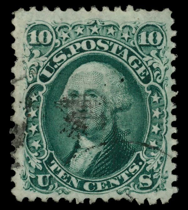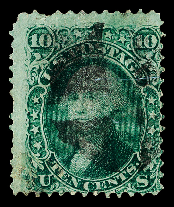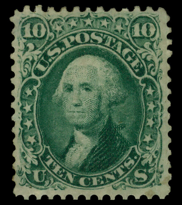 5011 ng 68 image1861, 10¢ green (Scott 68), regummed; small thin and reperfed at bottom, Fine to Very Fine.