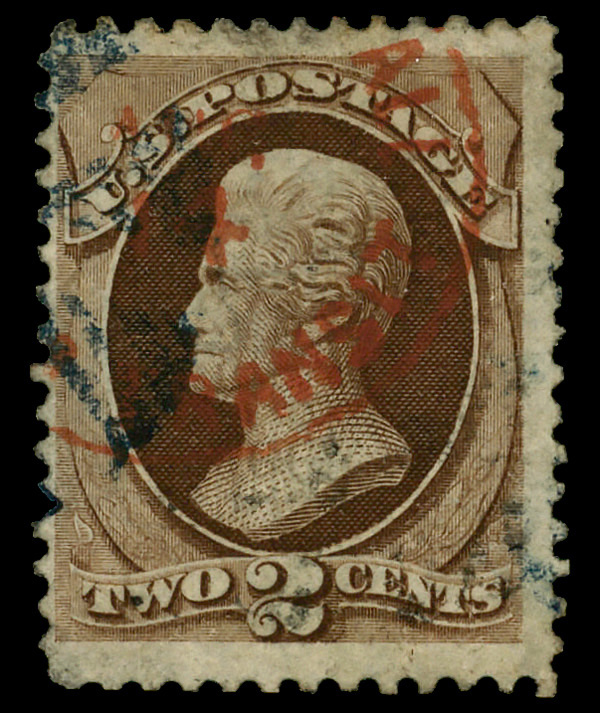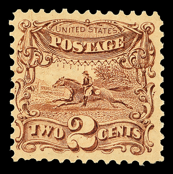 5032 og 113 image1869, 2¢ brown (Scott 113), o.g., barest trace of hinge, appealing with cool color, clean impression, and a superbly struck grill, nearly Very Fine.