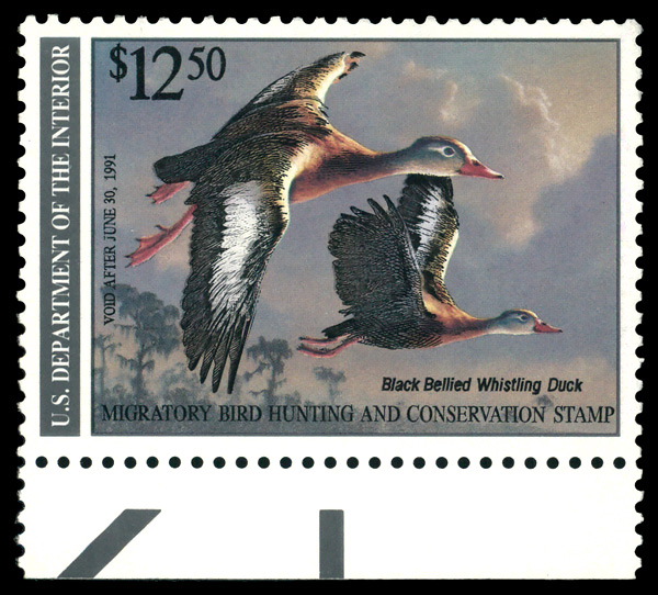 5499 nh RW57 imageFederal Duck Stamp, 1990, $12.50 Whistling Duck (Scott RW57), o.g., never hinged, Extremely Fine.