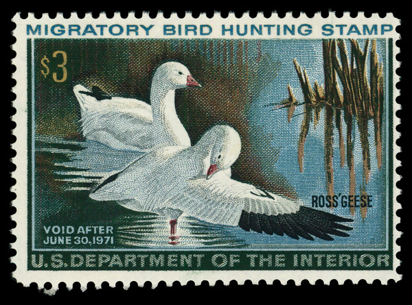 5490 nh RW37 imageFederal Duck Stamp, 1970, $3 Ross's Geese (Scott RW37), o.g., never hinged, Very Fine.