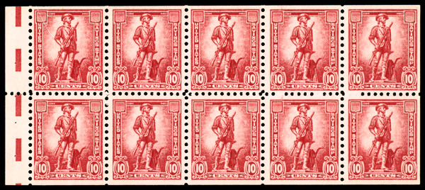 5517 BKnh PS11c imagePostal Savings, 1941, 10¢ rose red (Scott PS11c), booklet pane of 10, o.g., never hinged, Fine to Very Fine.
