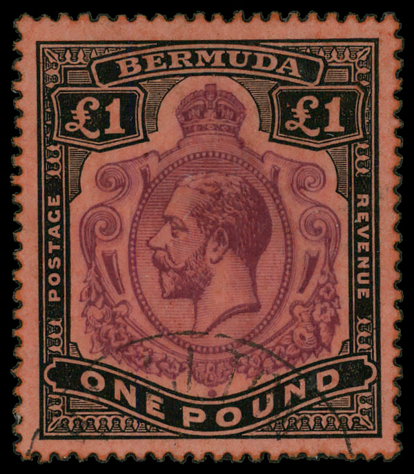5604 O 54 image1918, King George V, £1 purple & black on red (Scott 54), single, Fine to Very Fine.