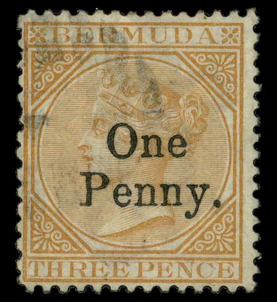5601 O 14 image1875, Queen Victoria Provisional Issue, 1d on 3d yellow buff (Scott 14), single, Fine to Very Fine.