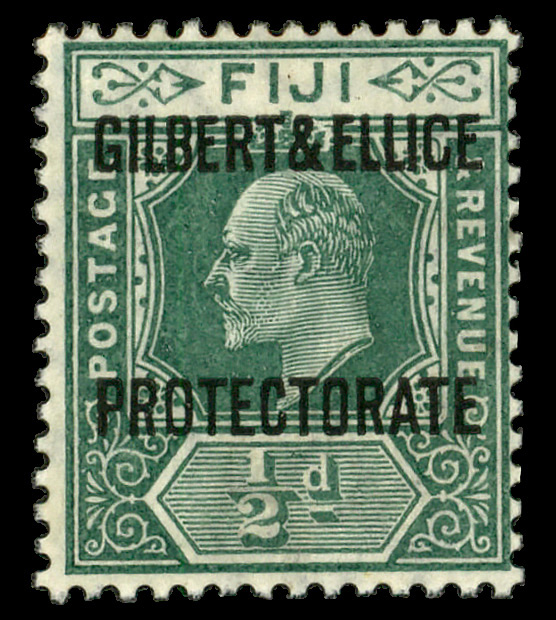 5636 og 1 image1911, "Protectorate" overprint on Fiji ½d green (Scott 1), single, o.g., lightly hinged, Fine to Very Fine.