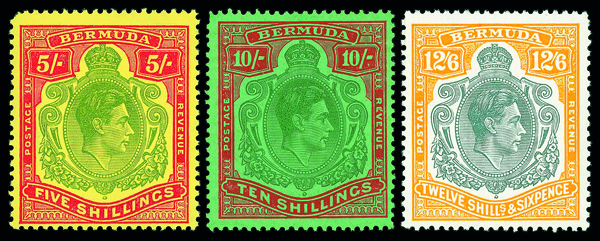 5605 nh 125-127 image1938-52, King George VI, 5sh to 12sh6p high values (Scott 125-127), singles, o.g., never hinged, Fine to Very Fine.