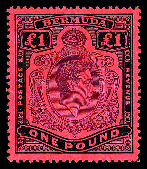5606 nh 128b image1941, King George VI, £1 purple & black on red, perf. 14, "ER" joined (Scott 128b), single, o.g., never hinged, Fine to Very Fine.