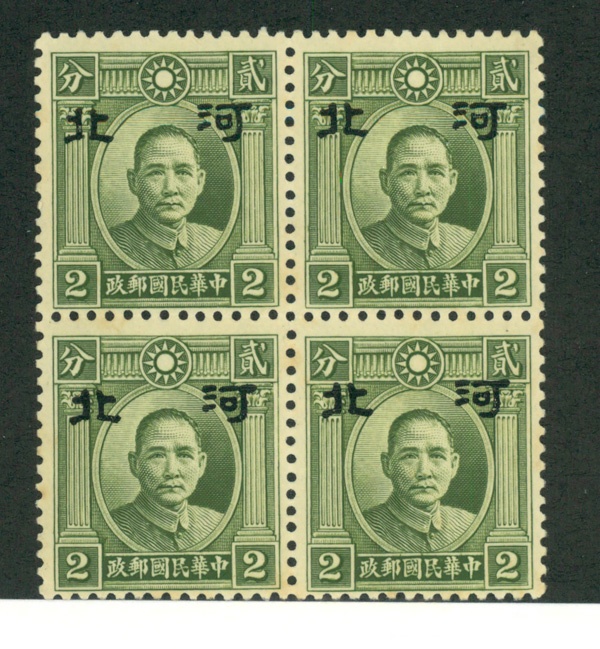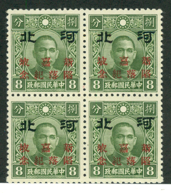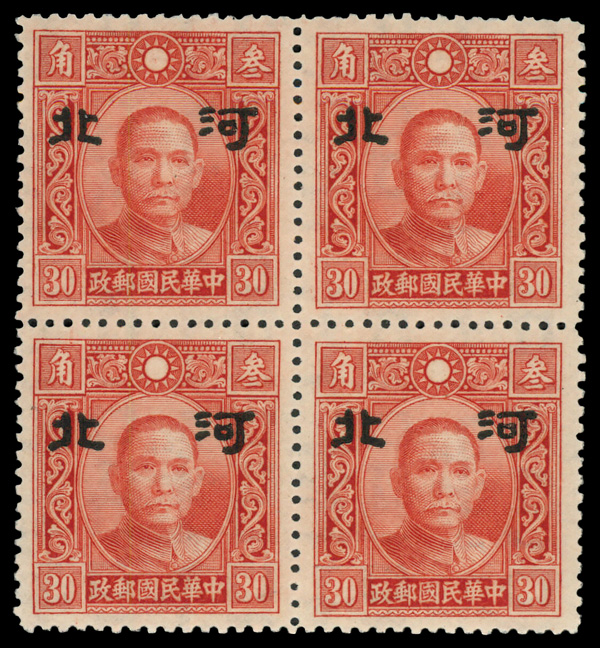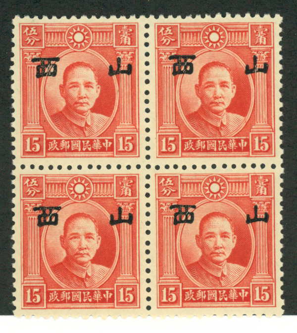 5880 nhbl 5N22 image1941, 30c scarlet Dr. Sun Yat-sen overprinted (Scott 5N22), block of 4, o.g., never hinged, Fine to Very Fine.