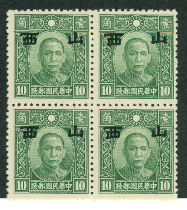 5879 nhbl 5N14 image1941, 10c green Dr. Sun Yat-sen overprinted (Scott 5N14), block of 4, o.g., never hinged, Fine to Very Fine.
