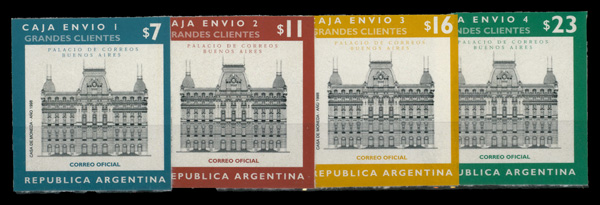 5858 nh Q1-Q3 image1999, Postal Service Headquarters, Buenos Aires, inscribed Grandes Clientes 7p blue & black - 23p green & black complete, complete set of singles, o.g., never hinged, Fine to Very Fine, See foot note after Scott Q3.