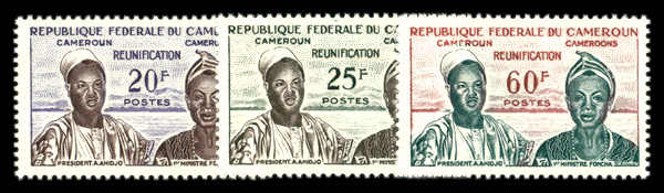 5870 nh 353-354 image1962, President Ahidjo and Prime Minister Foncha complete (Scott 353-354), complete set of singles, o.g., never hinged, Fine to Very Fine.