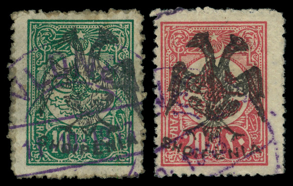 5849 O 5-6 image1913, 10pa-20pa Turkey, 'SHQIPENIA' & eagle overprint (Scott 5-6), Fine to Very Fine.