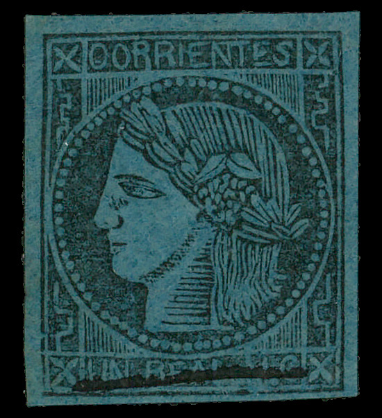 5860 ng 2 image1856, 3c black on blue Ceres with pen stoke through Un Real MC (Scott 2), single, unused without gum, Very Fine to Extremely Fine.