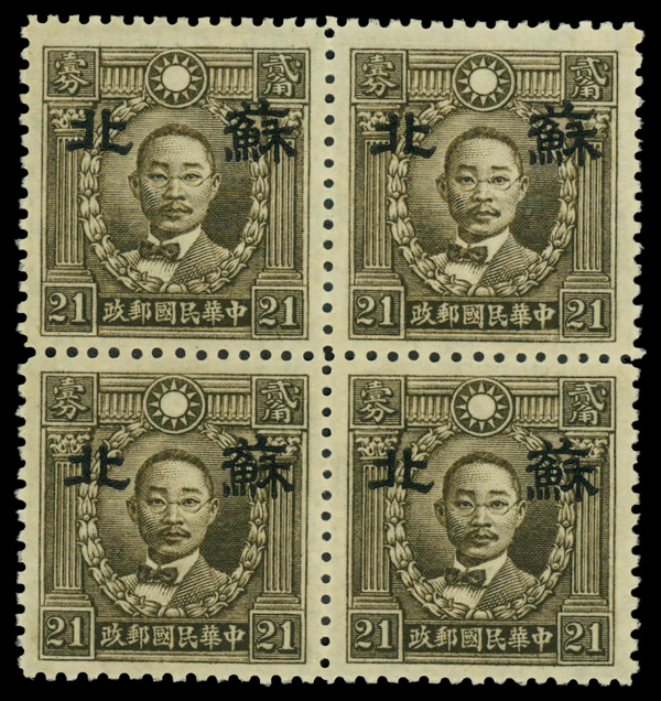 5881 nhbl 6N57 image1941, 21c olive brown Martyrs Issue Chu Chih-hsin overprinted (Scott 6N57), block of 4, o.g., never hinged, Fine to Very Fine.