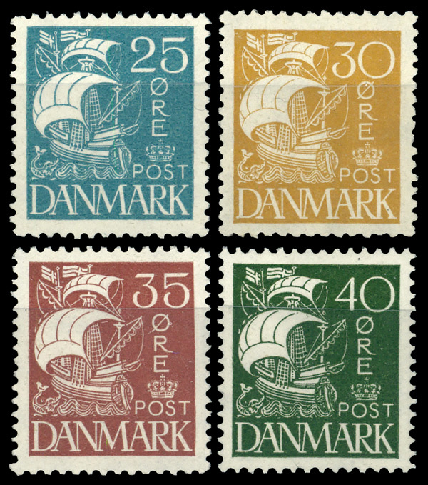 5917 nh 194-197 image1927, Caravel issue, 25øre to 40øre complete (Scott 194-197), set of 6, singles, o.g., never hinged, Fine to Very Fine.