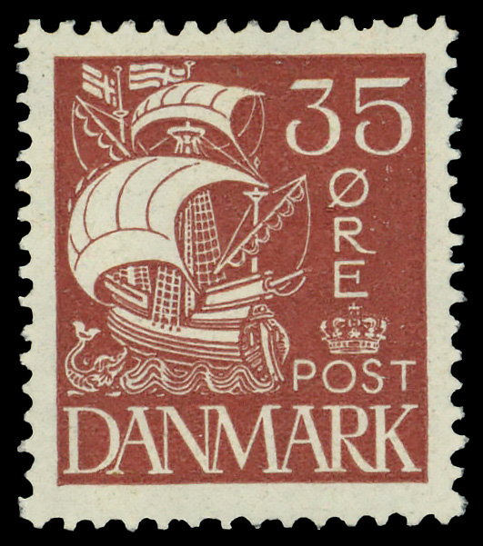 5918 nh 196 image1927, Caravel, 35øre red brown (Scott 196), single, o.g., never hinged, Fine to Very Fine.