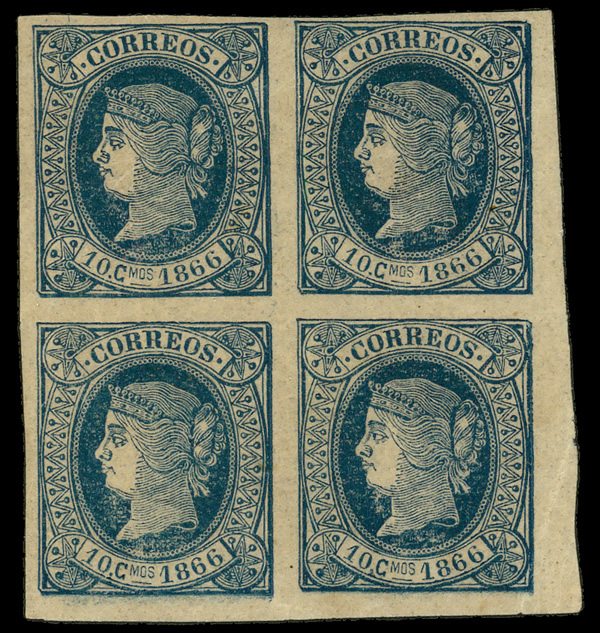 5897 nhbl 24 image1866, Queen Isabella II, 10c blue (Scott 24), block of 4, o.g., never hinged, Extremely Fine.